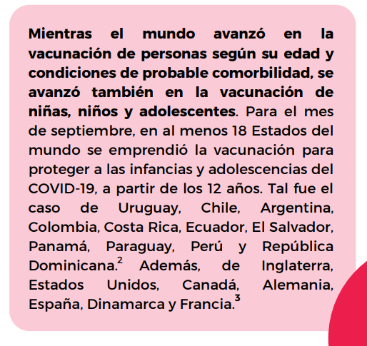 En cambio, México se vio forzado a incluirlos luego de que los niños, niñas y adolescentes exigieron su derecho a vacunarse frente al Palacio de Gobierno.