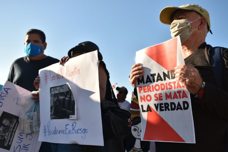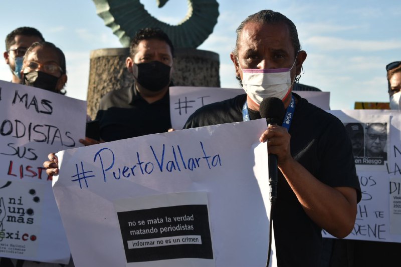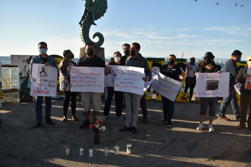 Como parte de estas acciones, una decena de periodistas se manifestaron en el centro de Puerto Vallarta, Jalisco para demandar colectivamente “que ninguna o ni ningún otro periodista sea asesinado por ejercer su derecho a informar”. La acción se llevó a cabo con pancartas, veladoras y flores. Ahí una reportera y varios reporteros tomaron el micrófono para compartir su sentir e impotencia frente a este contexto.