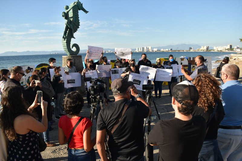 Periodistas de Puerto Vallarta, Jalisco, también se sumaron a la Movilización Nacional #PeriodismoEnRiesgo y desde el malecón exigieron condiciones de seguridad para ejercer su trabajo, así mismo exhortaron al gobierno para que ninguna del crímenes cometidos contra periodistas quede impune.