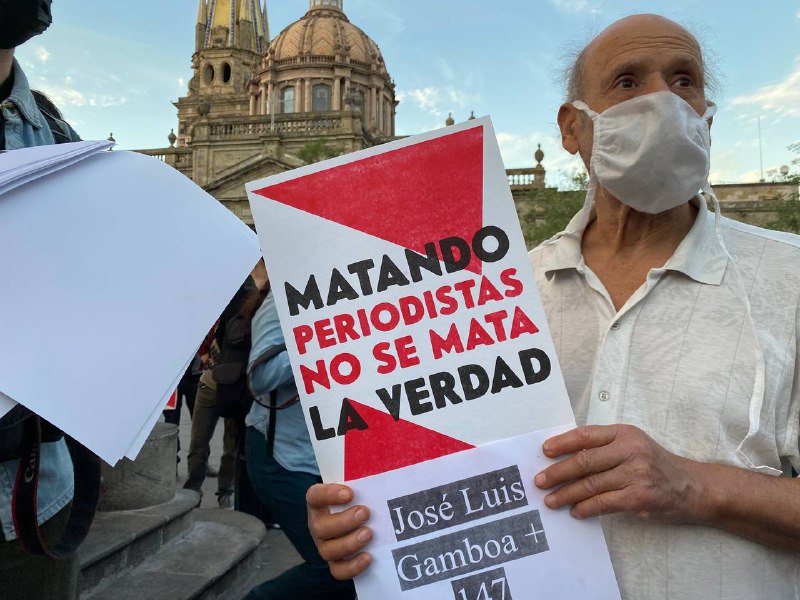 Vestidos de negro y portando diversos carteles con la consigna “Matando periodistas: No se mata la verdad”, más de 200 personas -entre periodistas y ciudadanas y ciudadanos solidarios- se reunieron en Plaza de Armas en Guadalajara, Jalisco, para exigir un cese a la violencia contra el gremio, pero también para señalar que no debe existir impunidad en los asesinatos de Lourdes Maldonado, Margarito Martínez y José Luis Gamboa.