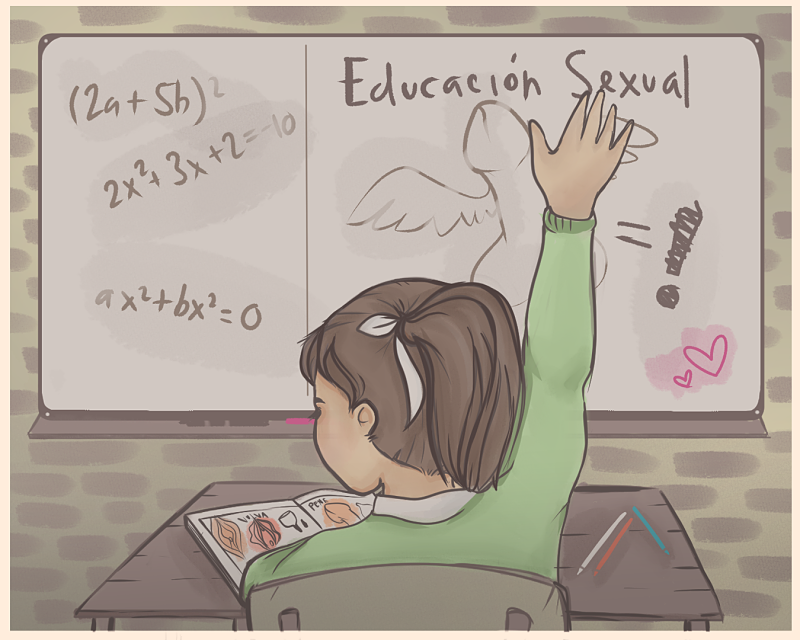 Regina, de 15 años, recuerda que en secundaria su profesora le llamaba “pajarito” al pene mientras explicaba el uso del condón masculino, único anticonceptivo del que se habló en el aula. También recuerda el llamado rotundo a la abstinencia que les hizo la docente: “no tengan relaciones sexuales porque luego ahí andan abortando y eso no está bien, no es de dios…”, comentario que incomodó a la adolescente, pues estaba en una escuela laica y pública. Platicando con ella, nos contó cómo de chica solía masturbarse y sentir placer sin entender bien lo que hacía, una duda que la escuela nunca le resolvió.