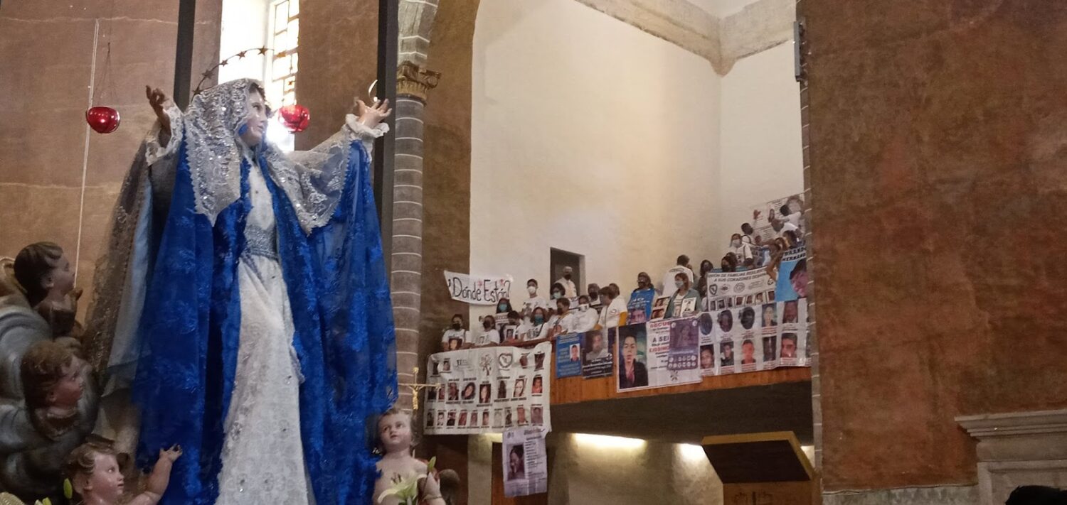 El domingo 11 de octubre se colocó el primer buzón en la Catedral de Cuernavaca. La iglesia se pobló con unas cien mujeres y hombres con playeras y lonas con fotos de personas desaparecidas.