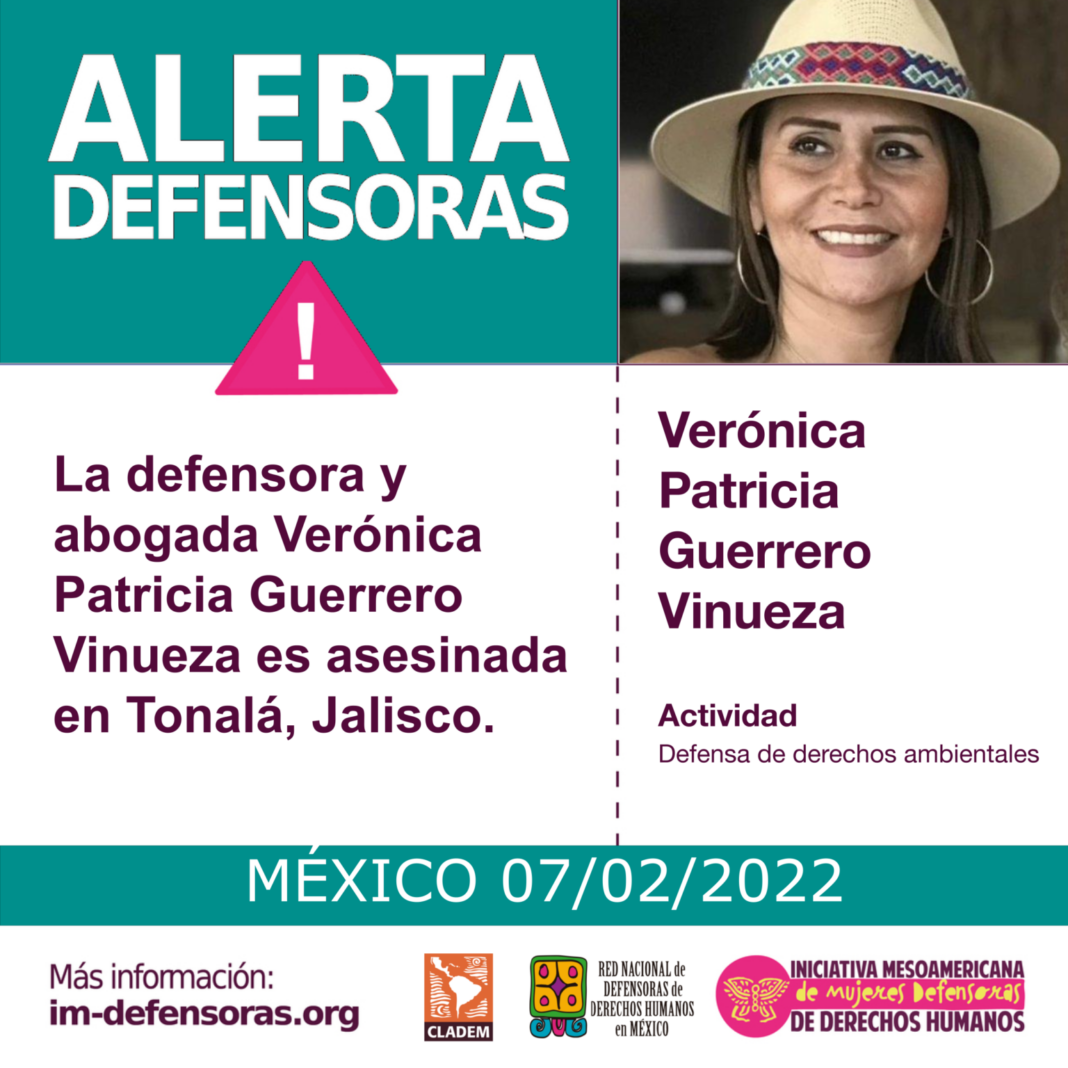 Con un manifestó más de un centenar de personas a título personal, organizaciones de la sociedad civil y colectivos en Jalisco y México exigieron de manera conjunta al nuevo Fiscal del Estado de Jalisco, Luis Joaquín Méndez Ruiz y al Gobernador, Enrique Alfaro Ramírez que se realicen las investigaciones necesarias para dar con los autores intelectuales y materiales del asesinato de Verónica Guerrero, abogada y defensora medioambiental en Tonalá, Jalisco.