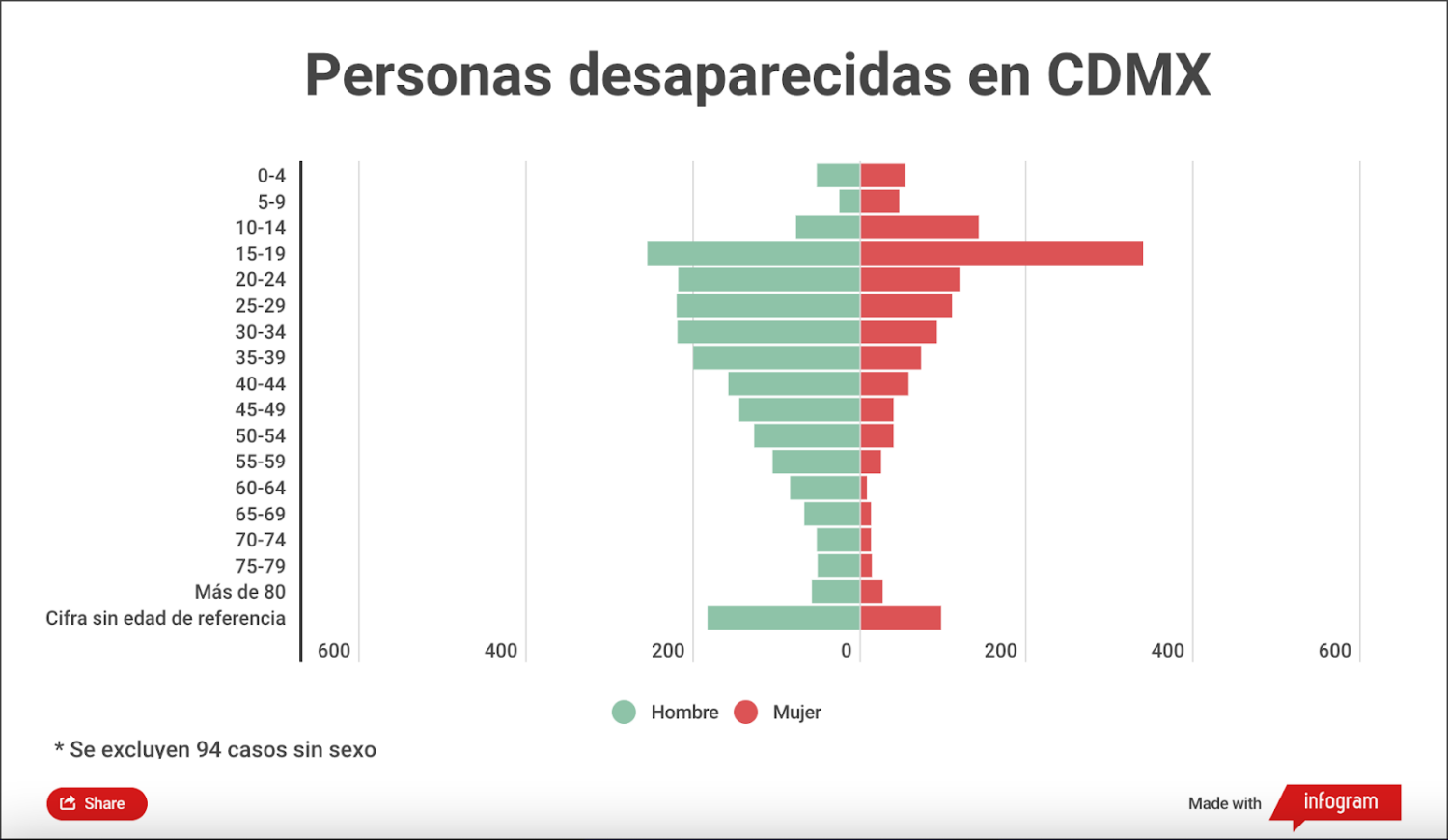 Karla y Cristoper están entre las 3 mil 665 personas que, hasta la tarde del 7 de febrero de 2022, se encontraban desaparecidas o no localizadas en la Ciudad de México. La mayoría de ellas, el 59%, fueron reportadas entre 2019 y 2021, de acuerdo con los datos públicos del Registro Nacional de Personas Desaparecidas y No Localizadas (RNPDNO). En lo que va de 2022, se tienen 80 casos.