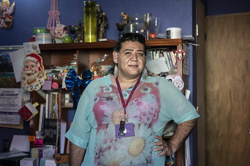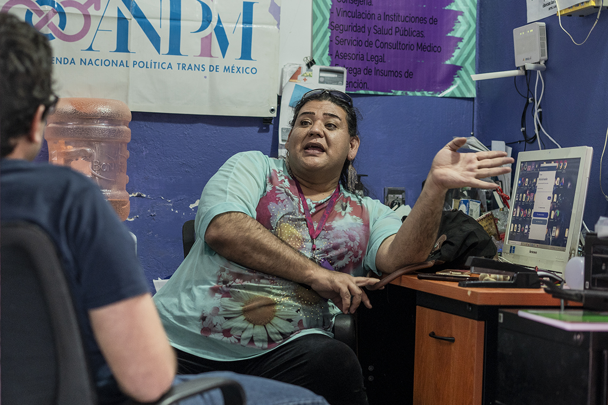 Lola Dejavú, de 43 años, nos recibe en la pequeña oficina de la organización donde trabaja: Agenda Nacional Política Trans de México, dedicada a la promoción de derechos de personas de la diversidad sexual.