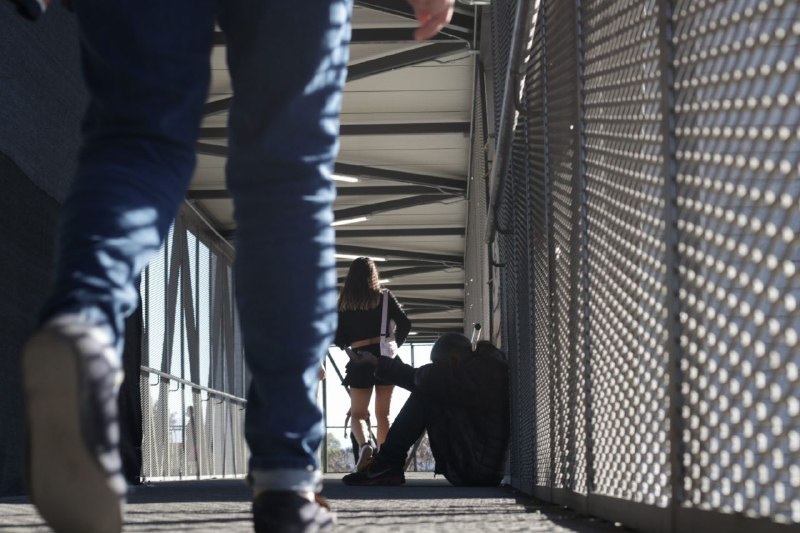 Las personas caminan a través de los puentes antipeatonales para llegar hasta la entrada de la estación Periférico Norte, ahí se detienen a observar el mapa del recorrido y la información de las otras rutas que tienen que abordar ahora que desaparecieron a las que normalmente usaban.