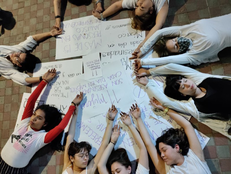A esta acción pacífica internacional se sumaron una decena de mujeres en Guadalajara, Jalisco, quienes reunidas frente a la Glorieta de las y los Desaparecidos reprodujeron este potente mensaje.