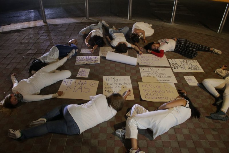 Mujeres que forman parte de los colectivos Latinas feministas, No es una somos todas y Back Home organizaron el performance en Guadalajara como parte de la movilización nacional e internacional.