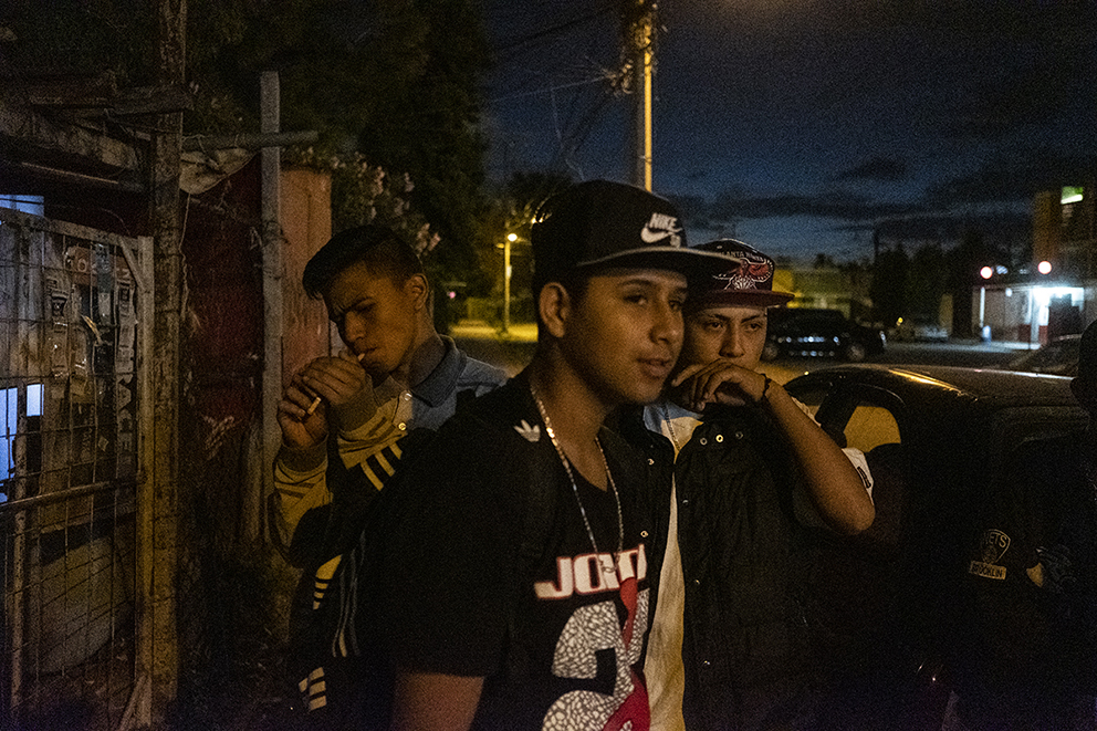 Miembros de la pandilla Poños Pavon York pasan el rato en la colonia Pavon, en el municipio de Soledad. Dicha pandilla tiene un par de generaciones de antigüedad y sus miembros se forman por familias de los mismos pandilleros. San Luis Potosí, SLP. Agosto 21, 2018. Mauricio Palos.