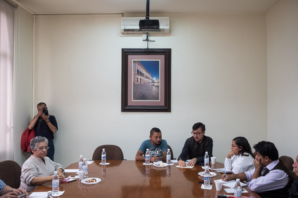Pedro Carrizales y su asesor David Medrano durante una audiencia con líderes de colectivos de discapacidad y movilidad. Pedro lidera la comisión de derechos humanos en el Congreso. San Luis Potosí, SLP. México. Octubre 23, 2018. Mauricio Palos.