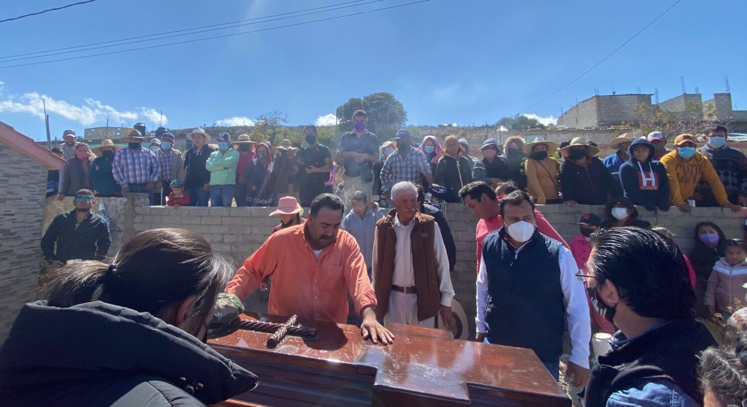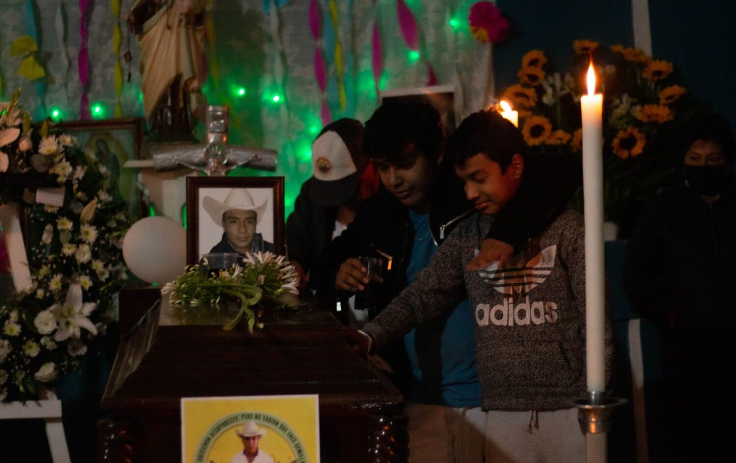 La procesión salió poco antes de la una de la tarde hacia la iglesia del pueblo y después hacia el panteón, a orilla de la carretera, para despedir a Juan de Dios y lograr que por fin él y su familia tuvieran paz. Entre porras y música, el ataúd llegó al polvoriento camposanto, rodeado de María Luisa, su esposo e hijos, papás, hermanos y las familias del colectivo, y alrededor más de cien personas.