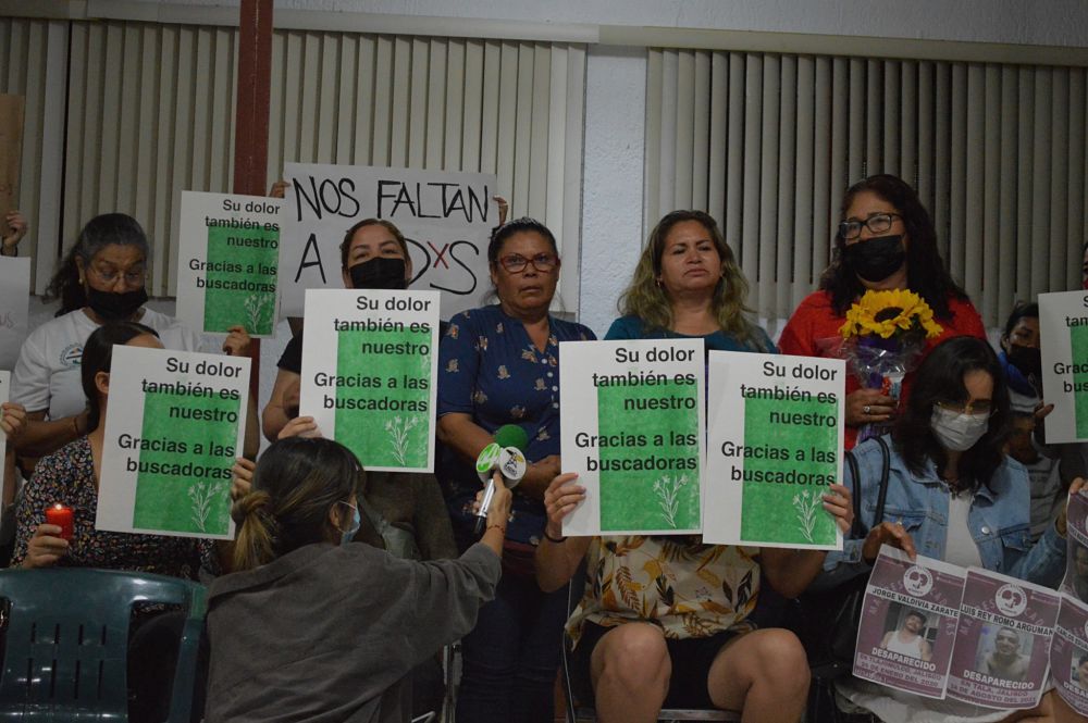 “Resistimos con ustedes hasta encontrarles”, “Desde el amor y ternura les acompañamos en su camino” y “Su dolor es nuestro dolor” fueron algunas de las respuestas de apoyo que se leían en los carteles de la concentración de agradecimiento a las buscadoras de diversos estados del país.