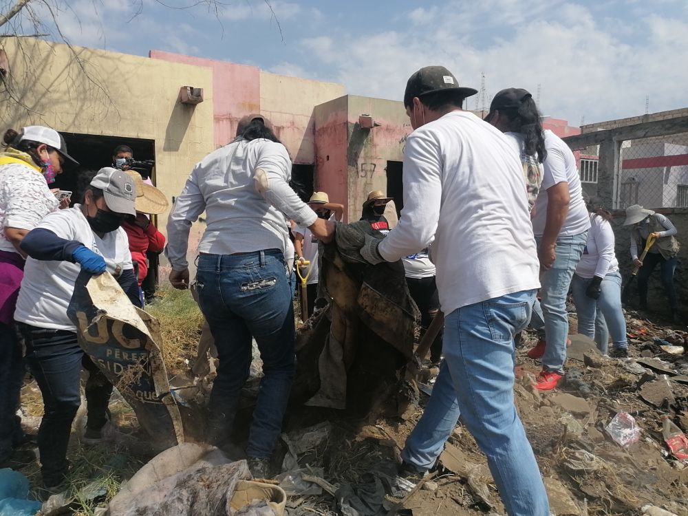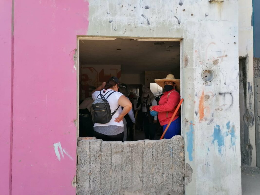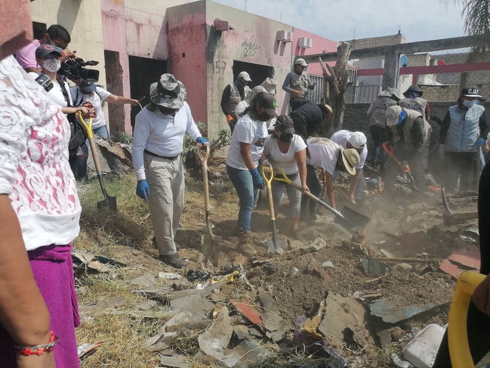 Las buscadoras continúan con picos y palas en otras casas más pequeñas hasta que después de cavar un poco en una de ellas detectan, por segunda vez en el día, ese olor ya tan reconocible después de una semana de trabajo. Rosaura Magaña, integrante del colectivo Entre Cielo y Tierra, menciona que durante toda la jornada localizaron restos humanos en cinco casas.