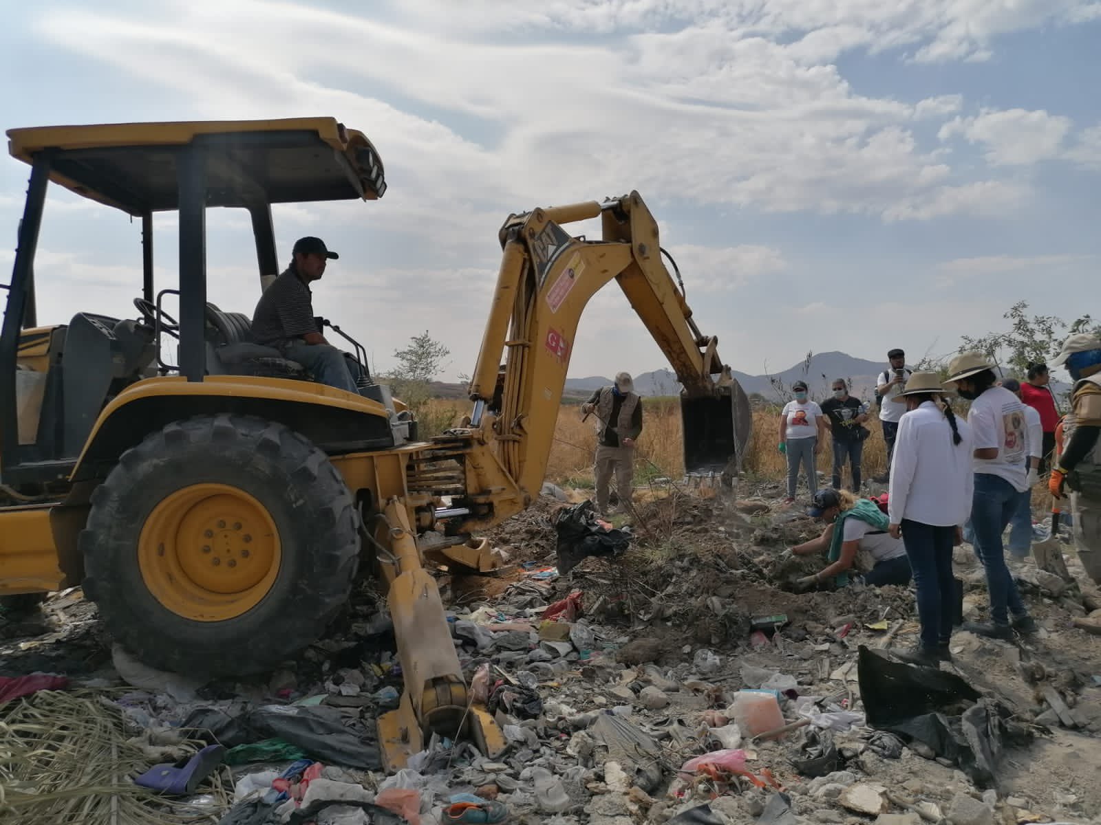 Trabajo en conjunto entre el operador de la retroexcavadora y las madres buscadoras.