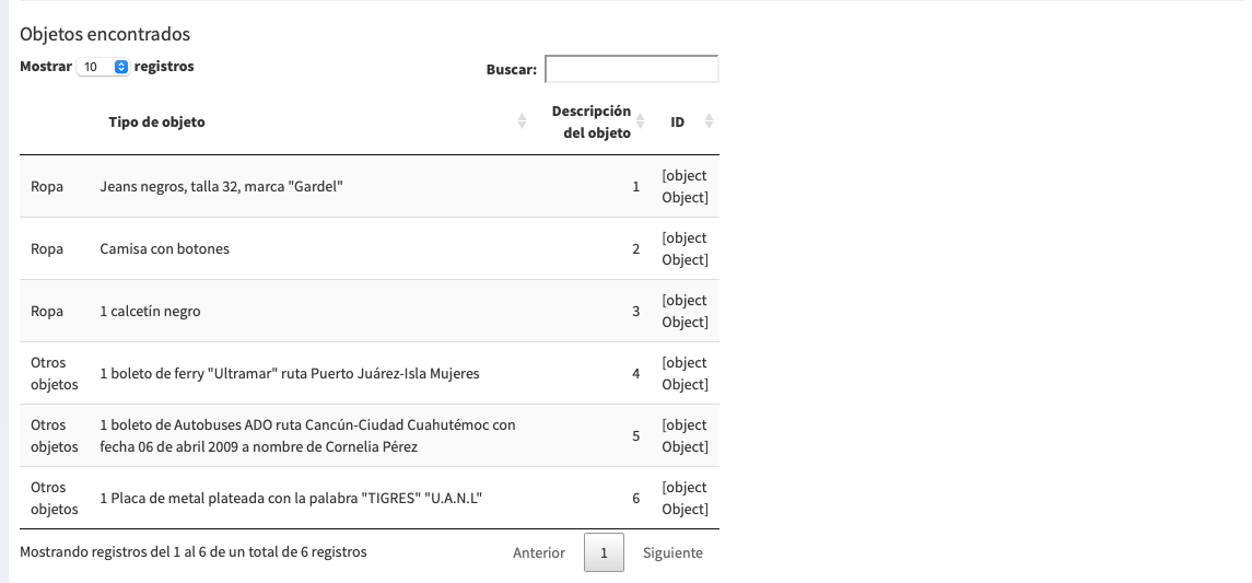La plataforma ofrece información fotográfica de las prendas y objetos que fueron localizados en los sitios de búsqueda, esto con la intención de que quienes buscan pueden identificarlos y eso les permita localizar a sus seres queridos.
