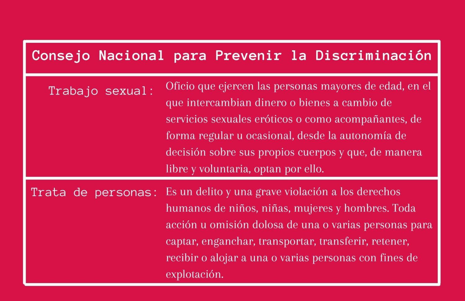 La confusión que hay entre el trabajo sexual y la trata de personas, generada y promovida a partir de las modificaciones a la ley que se hicieron durante la administración de Felipe Calderón, tiene costos emocionales, físicos y económicos para las trabajadoras sexuales. ¿Cuáles son las diferencias? Ellas nos explican