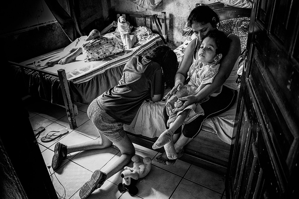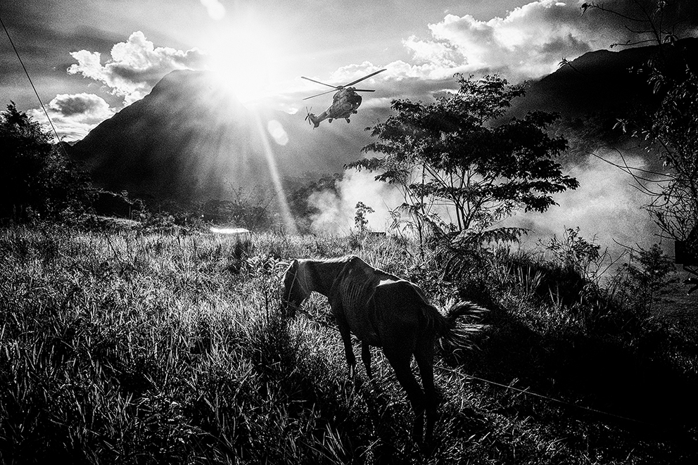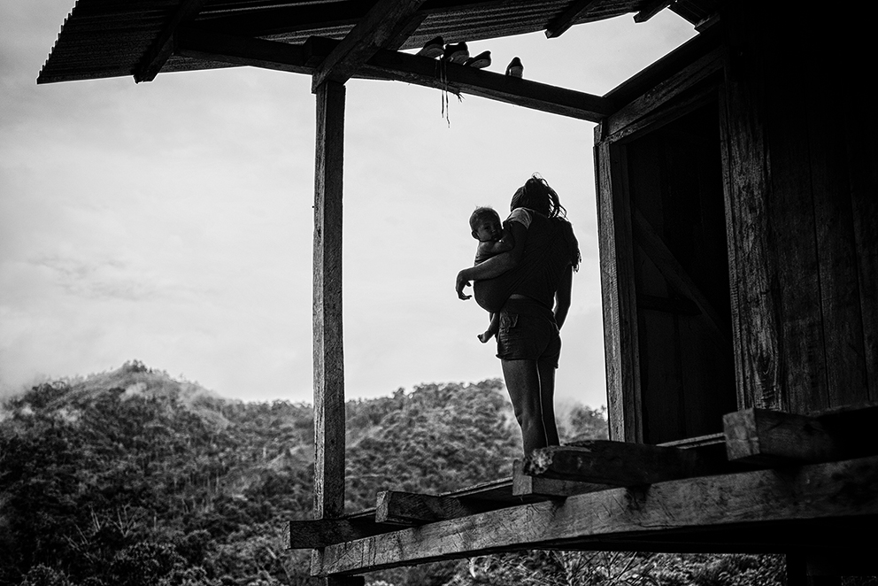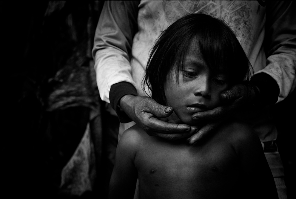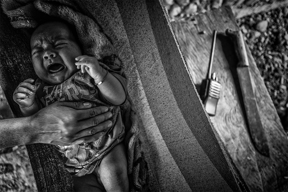 Evidencia de contaminación de petróleo en el terreno cercano al pozo Aguarico-04 (AG-04) Nueva Loja, Provincia de Sucumbíos. El pozo fue abandonado hace varios años y alrededor del lugar hay contaminación tanto en la superficie como en el subsuelo.La familia Z, reunida en un cuarto de la casa en la periferia de El Coca, Provincia de Orellana. La Señora Alexandra recibe 100 dólares mensuales como indemnización por parte del gobierno. De sus tres hijos, dos padecen de hidrocefalia y el Señor Pedro, cáncer. Damián, de 5 años, sufre de hidrocefalia y discapacidad cerebral del 82% , y Liliana de 15 años, tiene discapacidad del 75 por ciento.Vista aérea de la selva amazónica, Poblado de Shell – Comunidad de Llanchama Cocha en el territorio Sápara. El río Conambo no es navegable y su único medio de transporte es a pie o en avioneta. Este territorio es rico en petróleo y por esto desde hace años está amenazado por las concesiones petroleras que el gobierno ecuatoriano otorga a empresas extranjeras. Hoy se cuentan solo 573 miembros Sápara en un territorio aproximado de 401 millones 6 mil 103 hectáreas que cuidan y controlan en contra de la explotación petrolera; la cual amenazaría su futuro y la integridad de la selva.Génesis de 5 años corre entre las tuberías de petróleo semienterradas que cruzan la entrada de su casa en la periferia de El Coca, Provincia de Orellana. Mónica, su madre, tiene cáncer.Una lancha viaja por el Río Bobonaza, en las cercanías de la comunidad de Sarayaku, provincia de Pastaza, al interior de la selva amazónica. El Río Bobonaza es el único acceso por tierra para ingresar a la zona. El camino para llegar ahí es complicado, con aproximadamente 50 kilómetros de sendero desde Puyo, donde circulan algunas camionetas 4×4. El pueblo originario de Sarayaku, siempre se ha opuesto a la construcción de una carretera terrestre, esto para evitar la deforestación y así poder mantener el control de su territorio al que llegan intrusos de empresas petroleras y militares.Vista aérea del poblado de Shell, en la provincia de Pastaza. Este poblado adoptó el nombre Shell, por la primera empresa petrolera holandesa que llegó a Ecuador en 1937. Antes de la llegada de la empresa, el sitio era conocido por la presencia y cacería de puercos saínos. Este lugar tiene 8000 habitantes y el aeropuerto “Río Amazonas” cuenta con 12 aerolíneas de avionetas para los ingresos a la zona Amazónica Ecuatoriana.Don Luis no camina desde hace un año. Padece una enfermedad que desconoce y no tiene un diagnóstico oficial. Los médicos locales conjeturan que tiene cáncer de colon y distrofia muscular. Para los hombres, el cáncer de colon es una de las enfermedades cancerígenas más comunes en la zona.Una mujer Sápara, de la comunidad de Morete –en la provincia de Pastaza de la amazonía ecuatoriana– se asoma a la ventanilla de una avioneta recién aterrizada en la comunidad. Este territorio está rodeado por miles de hectáreas de selva primaria, por lo que sólo se puede acceder por aire. No hay carretera y a pie el recorrido lleva alrededor de una semana. La falta de una carretera es benéfica para los pobladores, ya que los indígenas pueden mantener el control del territorio y la preservación del mismo; evitando así la deforestación. El aterrizaje de una avioneta es un evento especial para los indígenas, pues significa el único contacto con el “mundo moderno”.Marcia, tiene 26 años de edad, fue diagnosticada con cáncer escamoso nasofaríngeo y fue abandonada por su esposo y sus dos hijas hace tres años. Ahora vive con su hermana en Sacha, provincia de Orellana.Delimitación de una zona contaminada por petróleo. Nueva Loja, provincia de Sucumbíos.Berta Gualinga, abraza a su hija Tzumi de 5 años Tzumi. Comunidad Kichwa de Sarayaku.Una familia de la comunidad de Sarayaku regresa después de una Minga. La Minga es el acto más solidario de una sociedad comunitaria en la Amazonía; es el trabajo donde todos participan para apoyarse. A cambio, se les ofrece comida y chicha, una bebida. En este caso, una joven pareja busca obtener el material para construir un techo de paja para su nuevo hogar. Río Bobonaza, comunidad del Pueblo Originario de Sarayaku.Helmut Scholz parlamentario de la Unión Europea mirando un pozo de quema de gas de PetroEcuador en la localidad de Dureno, provincia de Sucumbios. Scholz visitó en julio de 2017 Ecuador, para constatar el derrame de petróleo que provocó la empresa Texaco/Chevron. Este desastre ambiental ligado al petróleo es considerado por ambientalistas el más grave en la historia del planeta.Gerardo Gualinga, es el jefe de seguridad del grupo Wio, en la comunidad Kichwa del Pueblo Originario de Sarayaku. La Wio es una pequeña hormiga que vive en la selva. Pese a su tamaño, su mordida produce un gran dolor, picazón, fiebre y si el piquete es en el ojo produce ceguera. El grupo de seguridad Wio está preparado para monitorear el territorio y verificar la entrada de extranjeros y desconocidos, además hacen operativos de rescate y cuidan a las mujeres.Toma de zumo de tabaco. Son las 3:00 am y la comunidad de Yaku Runa, está despierta para la tradicional toma de Guayusa, una bebida que provoca el vómito para limpiar el estómago de posibles bichos y otras enfermedades. El zumo, también puede ser inhalado de la mano del mayor de la comunidad. Quienes lo hacen de esta forma tienen la creencia que sirve para aumentar su fuerza, poder tener sueños más claros que les permitan mejorar su vida. Yaku Runa, provincia de Pastaza.Niños de la comunidad Sápara de Llanchama Cocha, juegan luchas después de haberse bañado en el Río Conambo, en la provincia de Pastaza.El bebé recién nacido de Hilario y Luisa en la comunidad Zápara de Llanchama Cocha, provincia de Pastaza. A su lado están un radio de comunicación y un machete, objetos que Luisa utiliza cuando se aleja de su casa.Un helicóptero del ejé