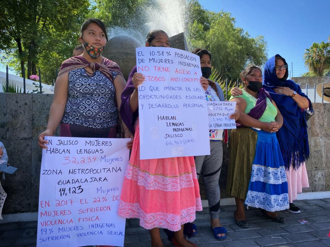 Mujeres indígenas purépechas integrantes de los colectivos Nosotras no olvidamos nuestras tradiciones y Red Promotora de los Derechos Humanos de la Mujer Indígena en Jalisco se manifestaron pacíficamente a las afueras de la Casa Hogar Cabañas para hacer público el caso de Alondra, niña indígena purépecha sustraída por la familia de su padre y enviada a este albergue.