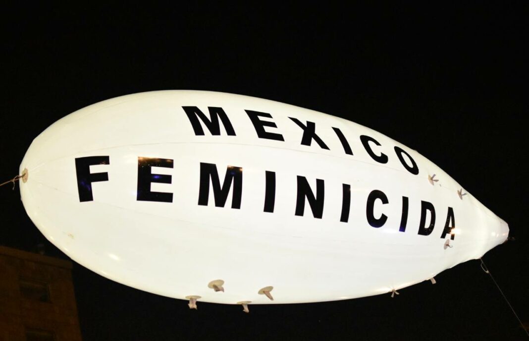 En el marco del #8MGDL, tomó el aire e hizo elevar un globo dirigible para colocar ahí dos claras consignas: “México feminicida” y “México transfeminicida”.