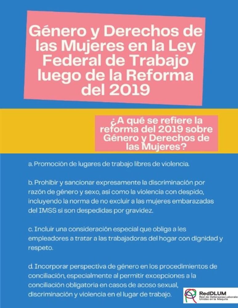 Estas y más reflexiones se llevaron a cabo durante el foro “Actualización de los Derechos Laborales de las Mujeres” organizado por la RedDLUM.