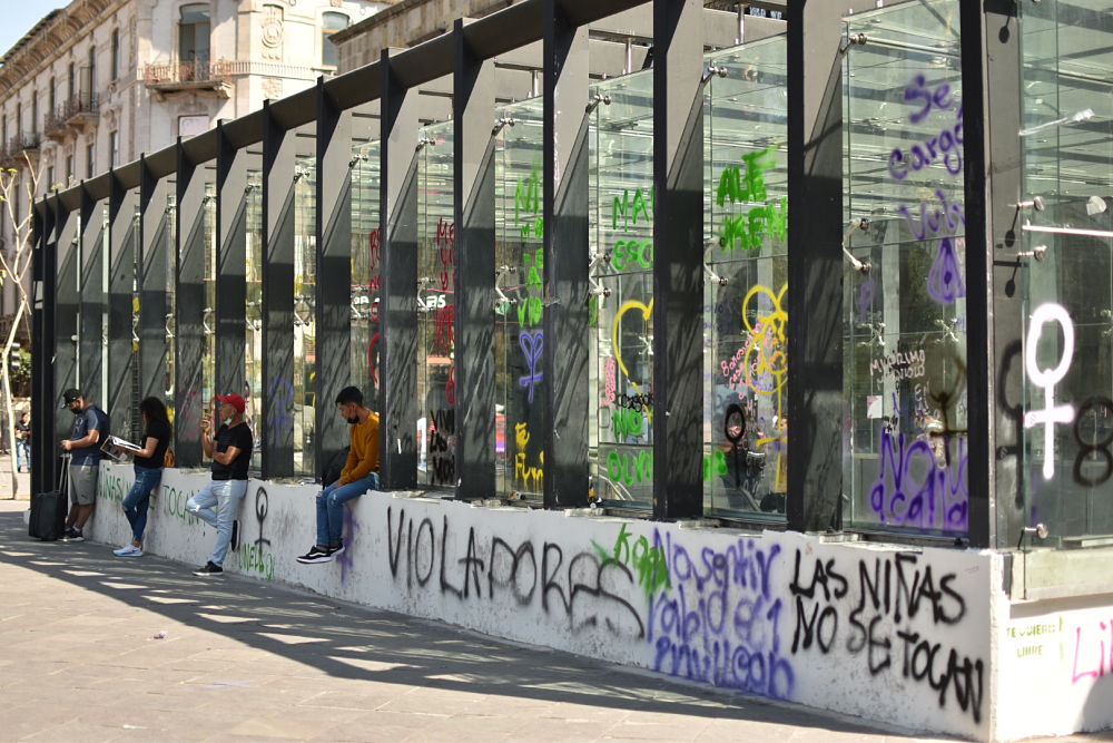 Los alrededores de la renombrada Plaza Imelda Virgen continúan con los mensajes y las denuncias de las miles de mujeres que salieron a marchar el martes pasado. Sus reclamos se han apoderado de los espacios públicos en el Centro Histórico de Guadalajara, como forma de contrarrestar las violencias que por años también han atravesado estas calles.