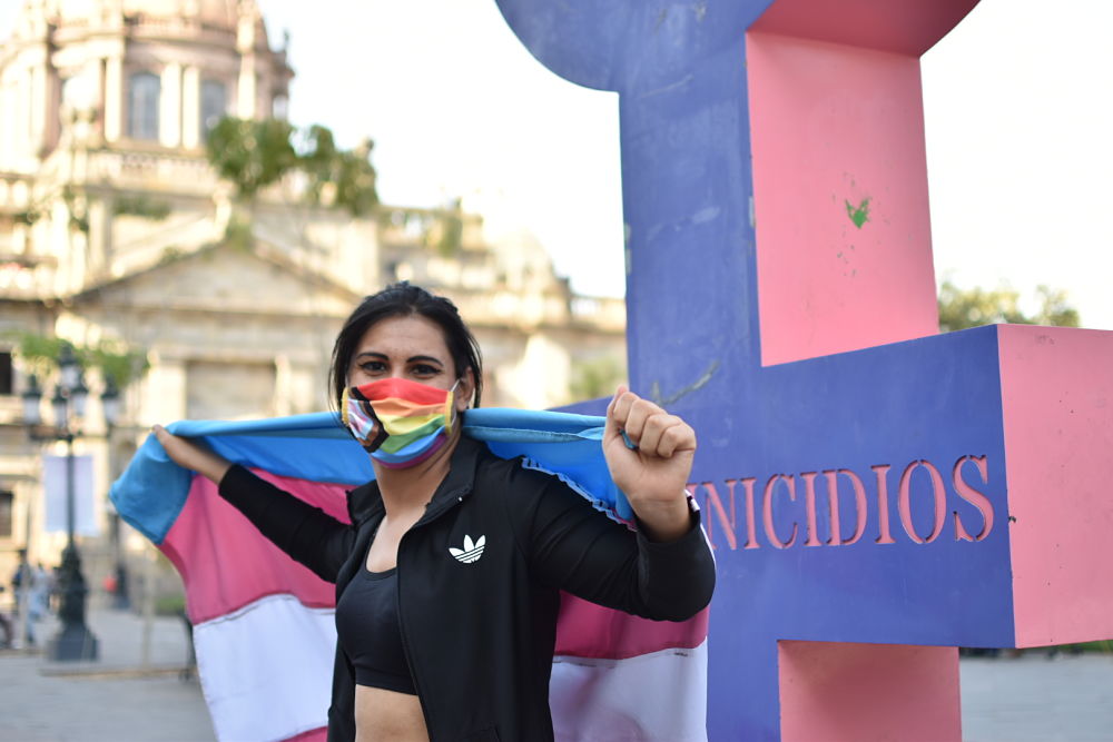 Tiene 28 años y es originaria de Zapopan, relata que decidió acudir a la marcha del pasado 8 de marzo, dadas las condiciones de unión y conciliación que demostraron las distintas agrupaciones y posturas feministas del estado. Ahí se unió a un grupo de mujeres que la acogieron y acompañaron en todo momento, llevaban consigo una bandera símbolo de la identidad trans que, luego decidieron regalarle.