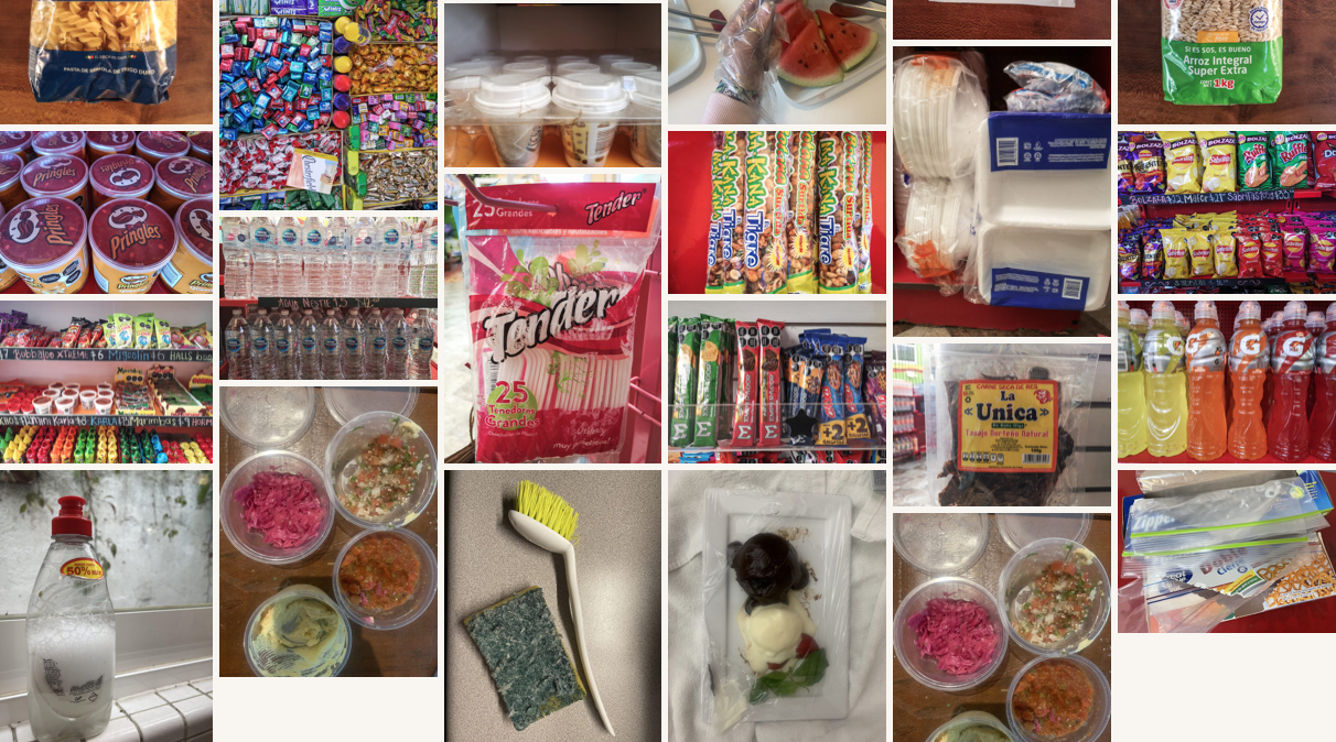 Las fotografías de esta galería fueron tomadas en distintas regiones de México, en los estados de Michoacán, Jalisco, Ciudad de México, Yucatán y Quintana Roo. Son todos plásticos de un solo uso relacionados con hábitos alimenticios. Han perdurado por mucho tiempo y, aunque lucen desgastados, su composición no ha sido mellada, sólo tal vez por el agua que despinta materiales y se lleva estas pinturas en su afluente.