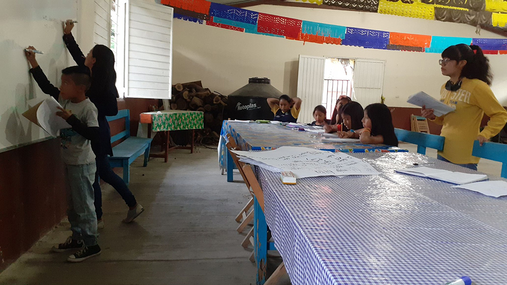 “Empezamos con una lonita y cartulinas. El taller no tiene ningún costo y lo hacemos de buena voluntad. Veo que a los jóvenes les interesa la lengua, porque preguntan e inclusive se utiliza el WhatsApp o Facebook para expresar nuestros avances”, contó.