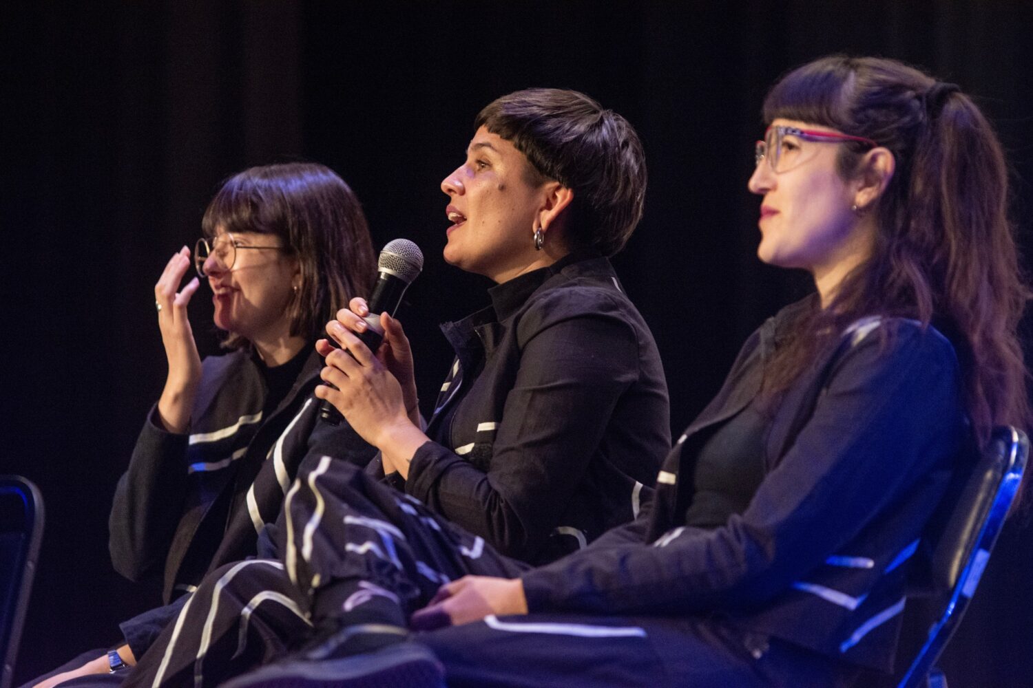 Luego de la puesta en escena, las integrantes del colectivo Paula Cometa, Sibilia Sotomayor y Dafne Valdés conversaron con las, los y les asistentes en un espacio de diálogo.