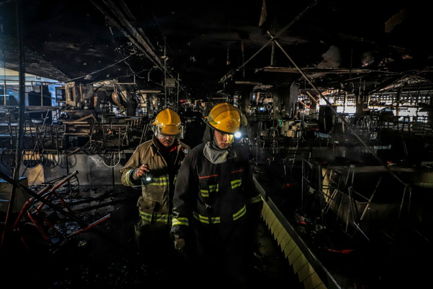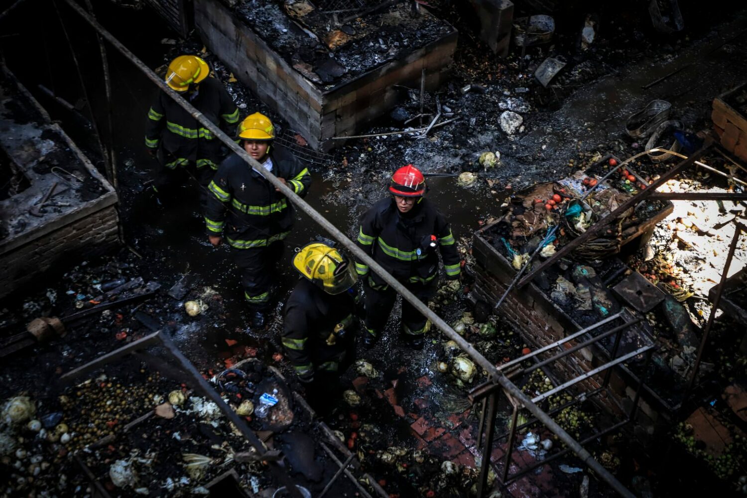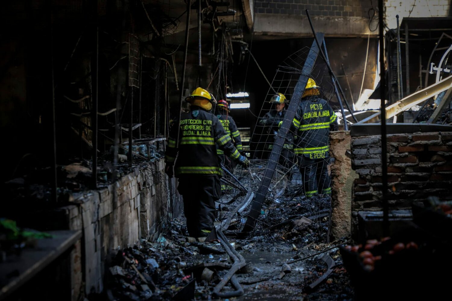 Bomberos al interior del Mercado, tras el incendio del 31 de marzo de 2022 (Foto: Fabrizio Atilano / Protección Civil y Bomberos GDL).