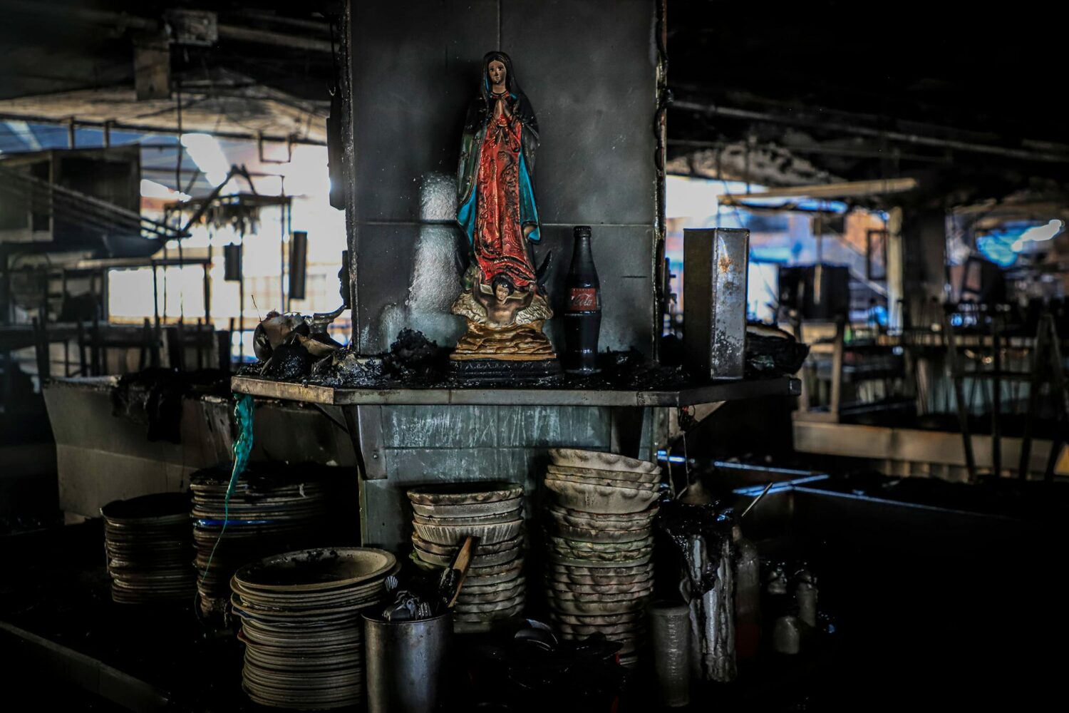Virgen de Guadalupe que sobrevivió a las llamas del incendio (Foto: Fabrizio Atilano / Protección Civil y Bomberos GDL).