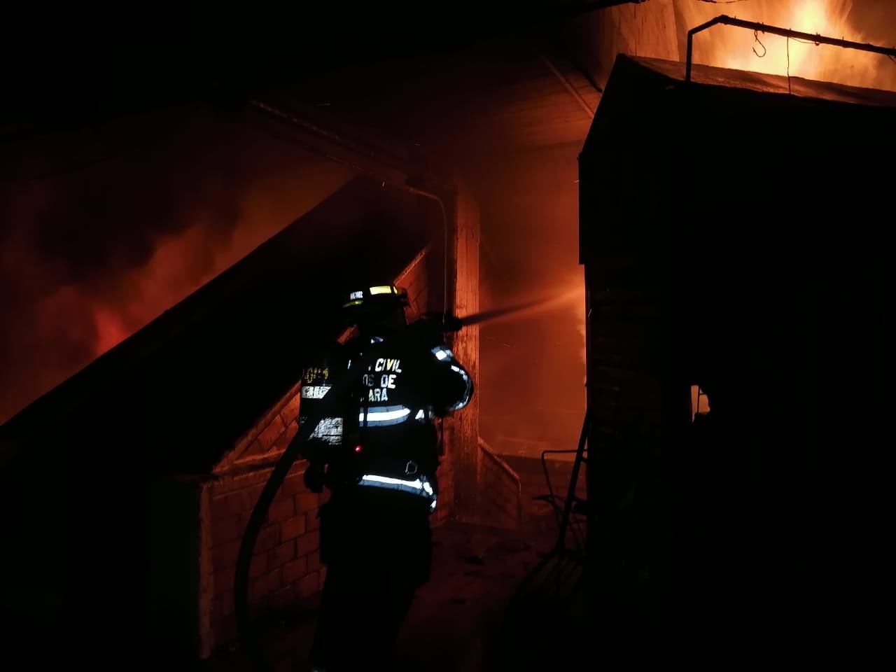 Bombero de Guadalajara combate el incendio Foto: Fabrizio Atilano / Protección Civil y Bomberos GDL).