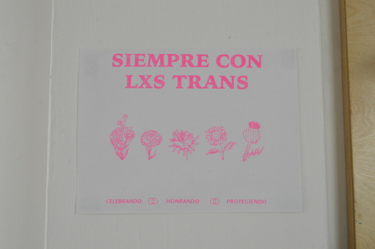 “Voy” fue la respuesta de Peach, quien esa madrugada con fiebre y un poco de malestar creó el diseño de la camiseta donde se leía la consigna “Siempre con lxs trans” rodeada con flores.