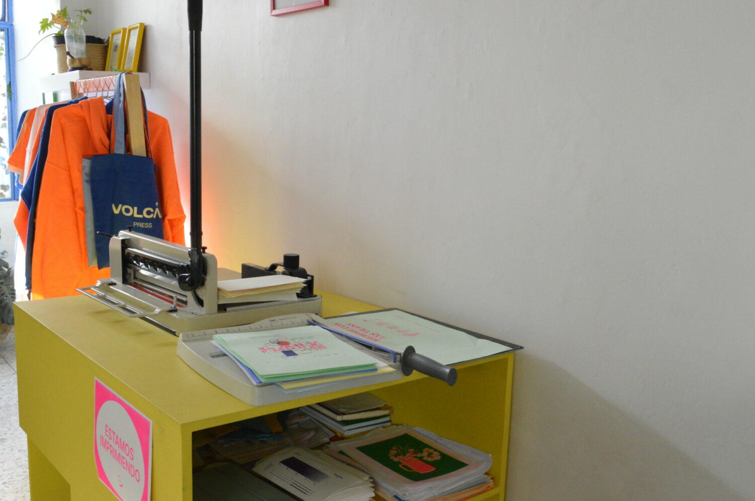 Desde hace tiempo, Peach tenía la idea de crear “Volcán Press”, pero faltaba dinero, espacio y tiempo. Finalmente, en los últimos meses del 2021 logró obtener un préstamo monetario y puso manos a la obra. “Volcán Press”, es un estudio de impresión risográfica y colaboración ubicado en la capital del estado de Jalisco. El nombre hace alusión al fuego interno de los volcanes, un fuego que “mueve y transforma” desde adentro.