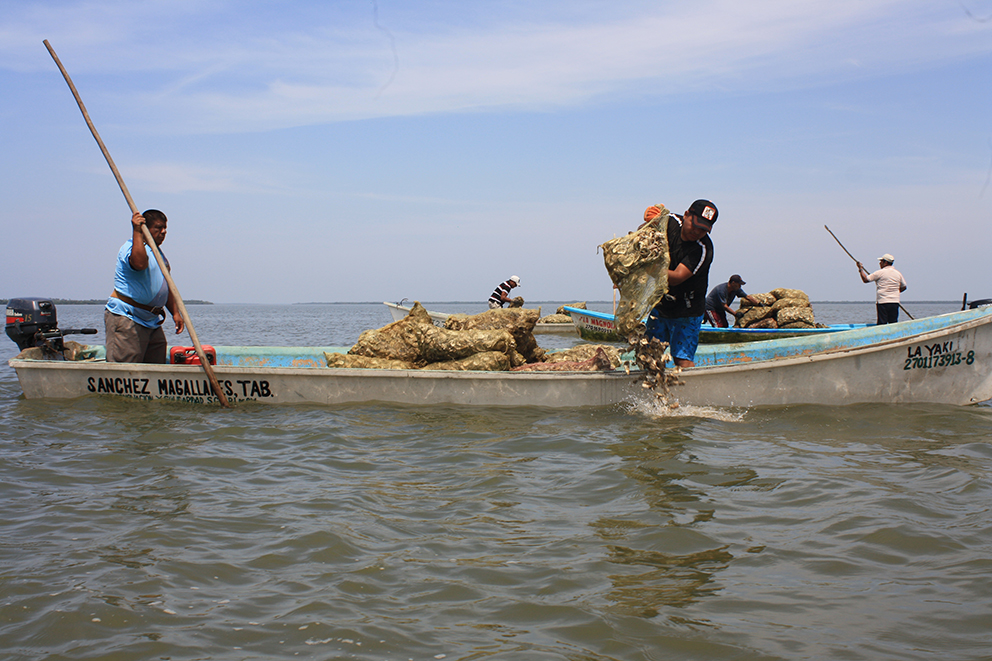 De este sistema lagunar ubicado en el puerto de Sánchez Magallanes, un paraje costero donde además 115 viviendas han sido siniestradas por la erosión costera, quien no es pescador se beneficia indirectamente con la captura del ostión, según Isaías Hernández. “Aquí se ayuda económicamente el que lo extrae, el que lo comercializa, las amas de casa, las mujeres que lo desconchan y todos, el tendero, hasta el que da servicio de transporte en moto”.
