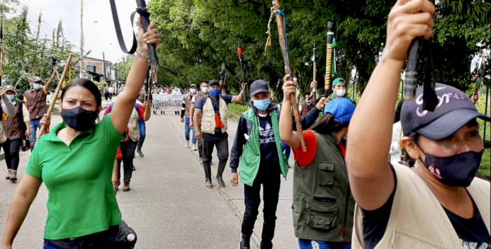 Observar esta información en un mapa permite tener una idea más clara de cómo los lotes petroleros se expanden sobre el verde intenso de la selva. Y esta situación se vuelve más compleja cuando se recogen los testimonios en campo: muchas comunidades y resguardos indígenas denuncian que no tuvieron procesos de consulta previa antes de realizar actividades sobre sus tierras y muchos menos se socializó la demarcación de estos bloques con estos pueblos.