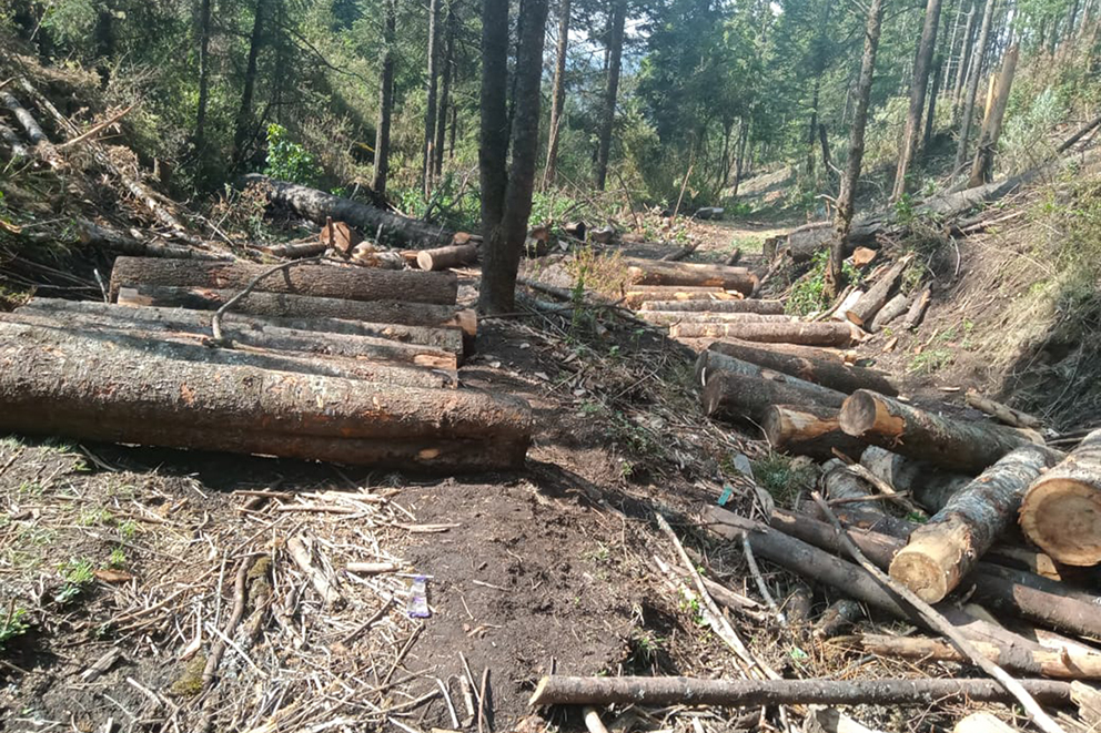 Los taladores no se han ocupado de intentar simular el desastre, enormes trozos de árboles que no alcanzaron a cargar son abandonados en caminos que abren con equipo especial durante la noche y por donde arrastran las moles en ocasiones de más de 60 años.