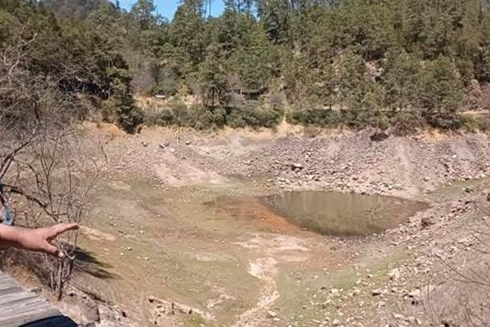 El otro impacto es que de los embalses de este Parque Nacional, la laguna Tonatiahua, la principal, está reducida al 70%, pero en algunas zonas ya quedaron expuestos los bordos de más de un metro y en otros puntos comienza a verse su fondo. El azul turquesa ha sido desplazado por manchones terregosos