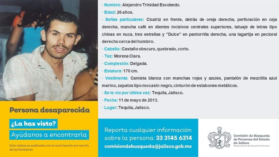 Raquel busca desde hace nueve años a su hijo, Alejandro Trinidad Escobedo, quien fue desaparecido el 11 de mayo de 2013 en Tequila, Jalisco.