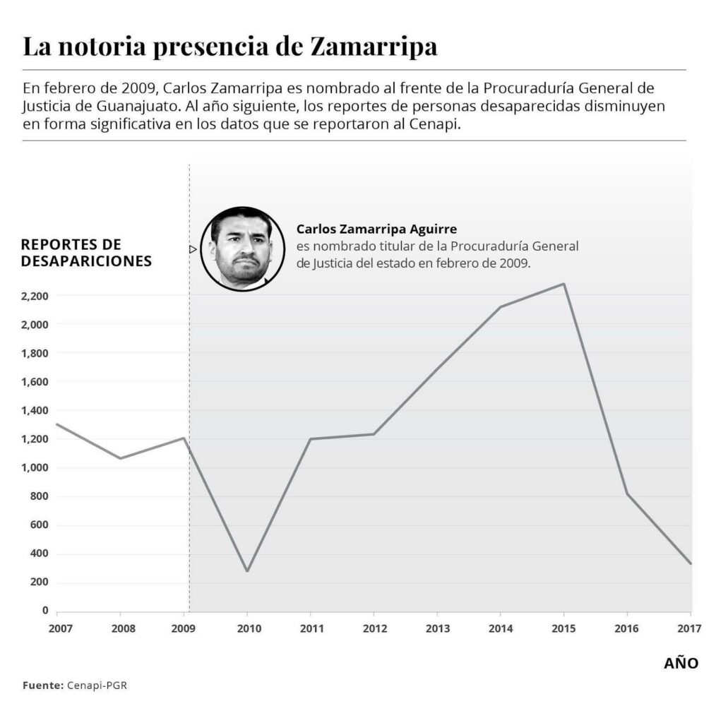 Carlos Zamarripa fue ratificado como procurador de Guanajuato durante el gobierno de Miguel Márquez Márquez (2012-2018), quien fue su compañero en la Universidad La Salle. Fue en ese sexenio cuando la violencia y la presencia del Cártel Santa Rosa de Lima —conocido por controlar el robo de combustibles— comenzaron a ser más evidentes. Fue en esa administración cuando las autoridades estatales negaron con mayor vehemencia la existencia de los desaparecidos.