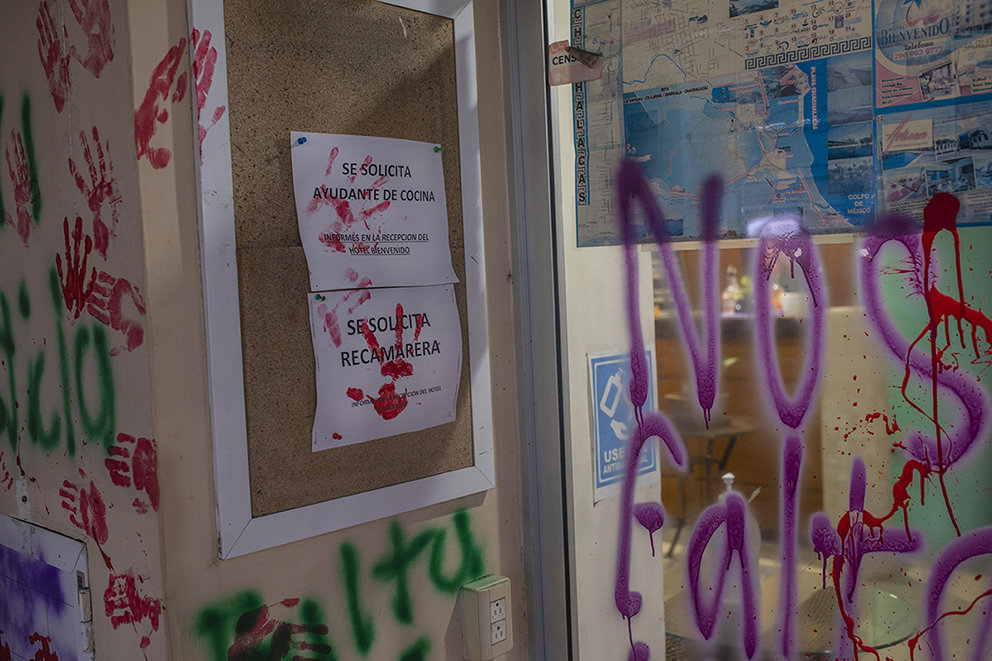 Jóvenes feministas de Cardel realizaron acciones directas para protestar y exigir investigaciones certeras en el caso de la desaparición de Viridiana Moreno, efectuando pintas y rompiendo los cristales del Hotel Bienvenido y el Palacio Municipal de La Antigua.