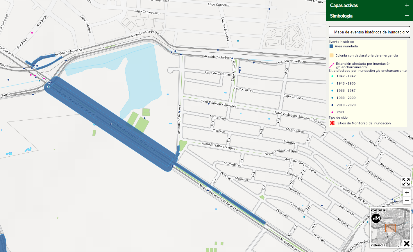 Una revisión del Atlas Metropolitano de Riesgos del Instituto Metropolitano de Planeación (IMEPLAN) arroja resultados similares, usando datos más recientes e históricos más amplios: la zona presenta riesgos de inundación, con varios eventos del tipo registrados en la zona.