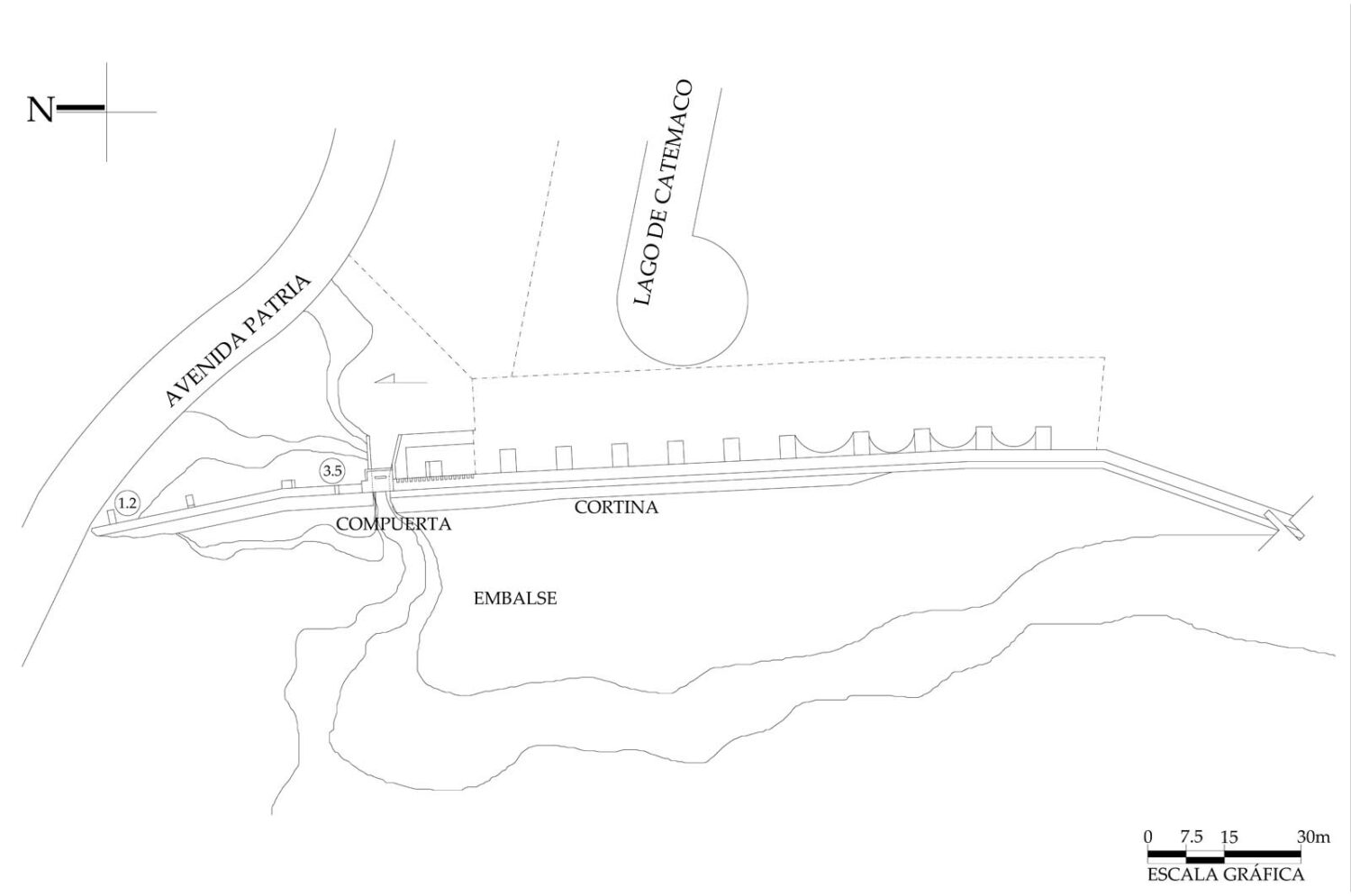 El nuevo proyecto contempla la integración arquitectónica de la presa al edificio: se elevaría el entrepiso de la planta baja para dejar la cortina visible, se recorrería toda la construcción para que se respete la franja de separación entre el edificio y el monumento “replegando la obra a la parte posterior del predio”, y se cambiarían varios cajones de estacionamiento pegados al muro por espacios ajardinados.