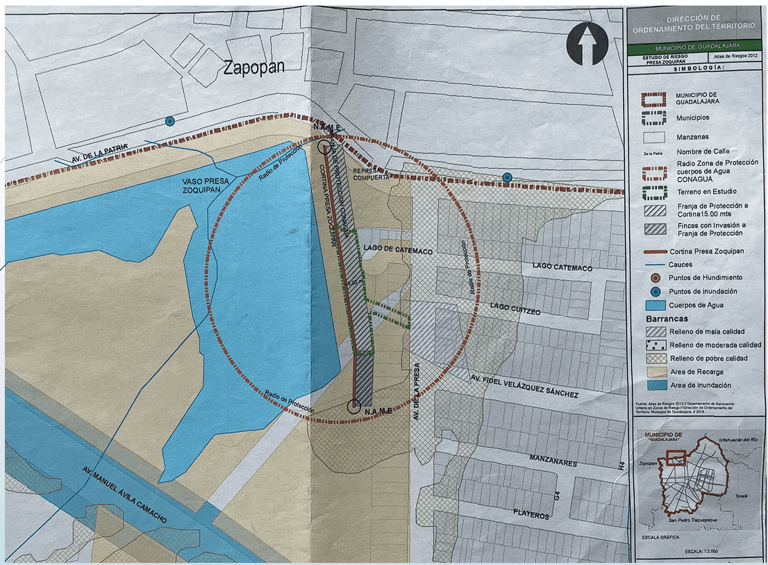 Plano publicado por la Secretaría de Obras Públicas de Guadalajara en octubre de 2014, elaborado con información del Atlas de Riesgos 2012.
