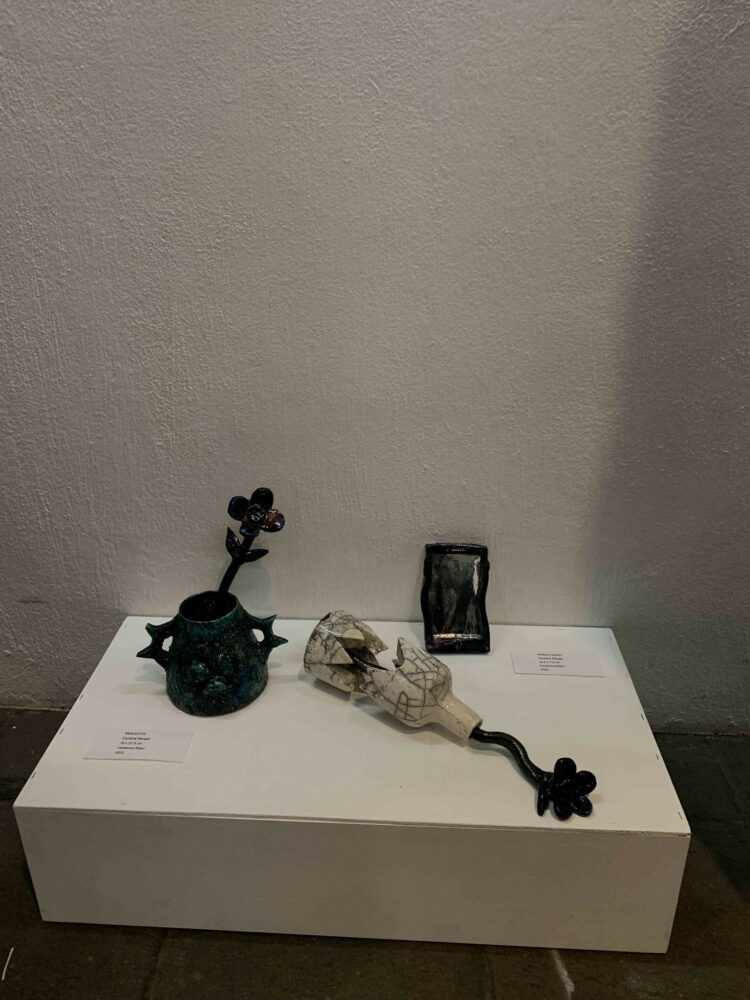 Finalmente, Carolina Rangel expone con piezas de cerámica “pedazos” de su cuerpo; entre ellos el busto, donde no trata de construirlo de forma “ideal”. Al contrario, la artista quiere representar su dolor con el uso de grietas, las cuales representan sus rupturas con la belleza convencional.