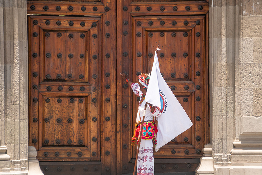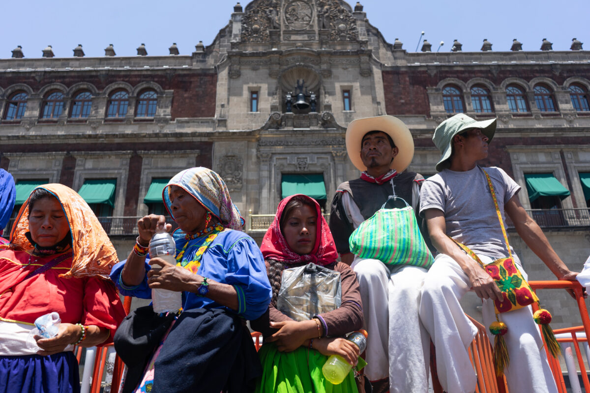 La caminata desde el cerro del Tepeyac desemboca en el Zócalo de la Ciudad y se estaciona frente a Palacio Nacional. Ahí piden que Óscar Hérnández, autoridad máxima, entre por las vallas y toque a la puerta.