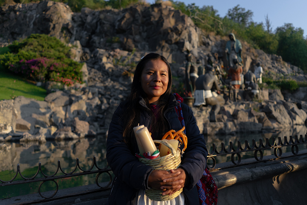 “Ofrendamos a nuestra madre, a la del Tepeyac y a la que nos cuida, todos los días. A la par se entregaron cuadros con figuras de animales que nosotros creemos que nos ayudan en nuestra cosmovisión”.
