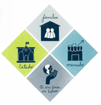 Uno de sus conceptos favoritos es el “cuidado diamante”, el cual agrupa a las instituciones involucradas en la provisión del cuidado: las familias, el Estado, los mercados y la comunidad, colocando a cada una de ellas en la punta de un diamante. De tal forma que, a través de ese diamante, es posible observar cómo se organiza el cuidado mediante el intercambio entre estos cuatro actores y sus elementos.