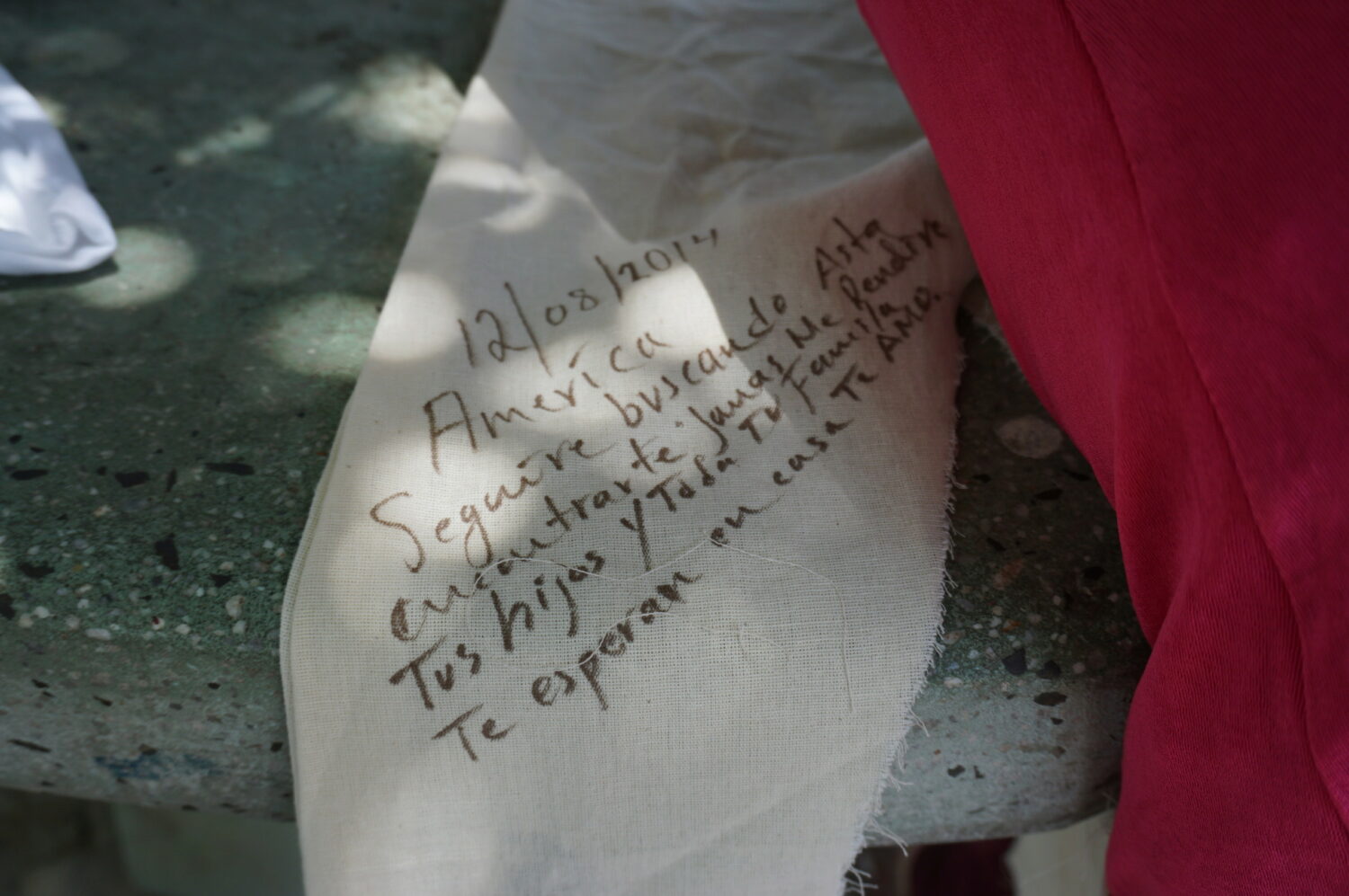 Mensaje para América escrito por su madre en manta.