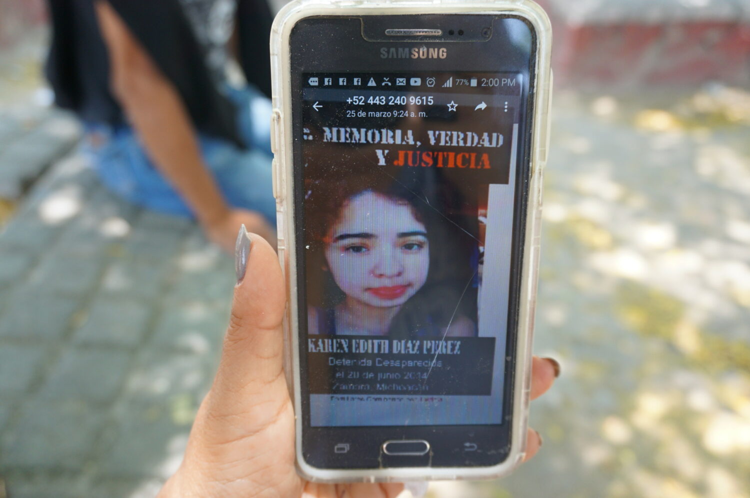 Karen Edith Pérez Díaz fue desaparecida cuando tenía 17 años, el 20 de junio de 2014, hoy tiene 25. Su padre Gilberto Díaz narra que la joven menor de edad salió con sus primas a una fiesta en Chilchota, municipio de Michoacán, pero lo único que saben es que la camioneta en la que viajaban pasó cerca del monumento a Juárez en la entrada a Zamora “ahí fue donde se ve la camioneta pasar, pero no se sabe hacia dónde se fue” dice.